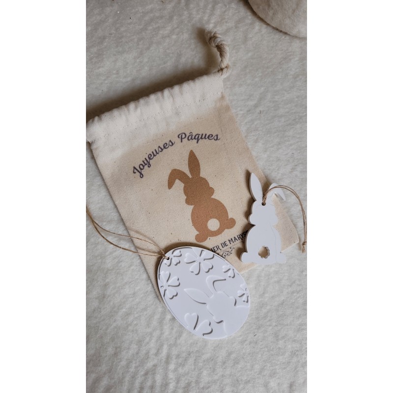 Pochon en coton renfermant des objets décoratifs ludiques et élégants  pour les petits chasseurs.