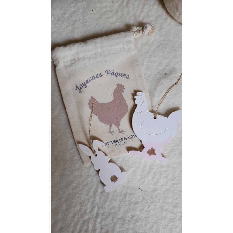 Pochon en coton renfermant des objets décoratifs ludiques et élégants  pour les petits chasseurs.