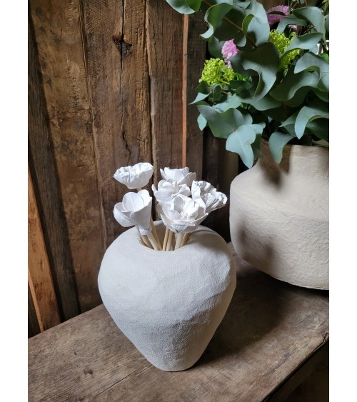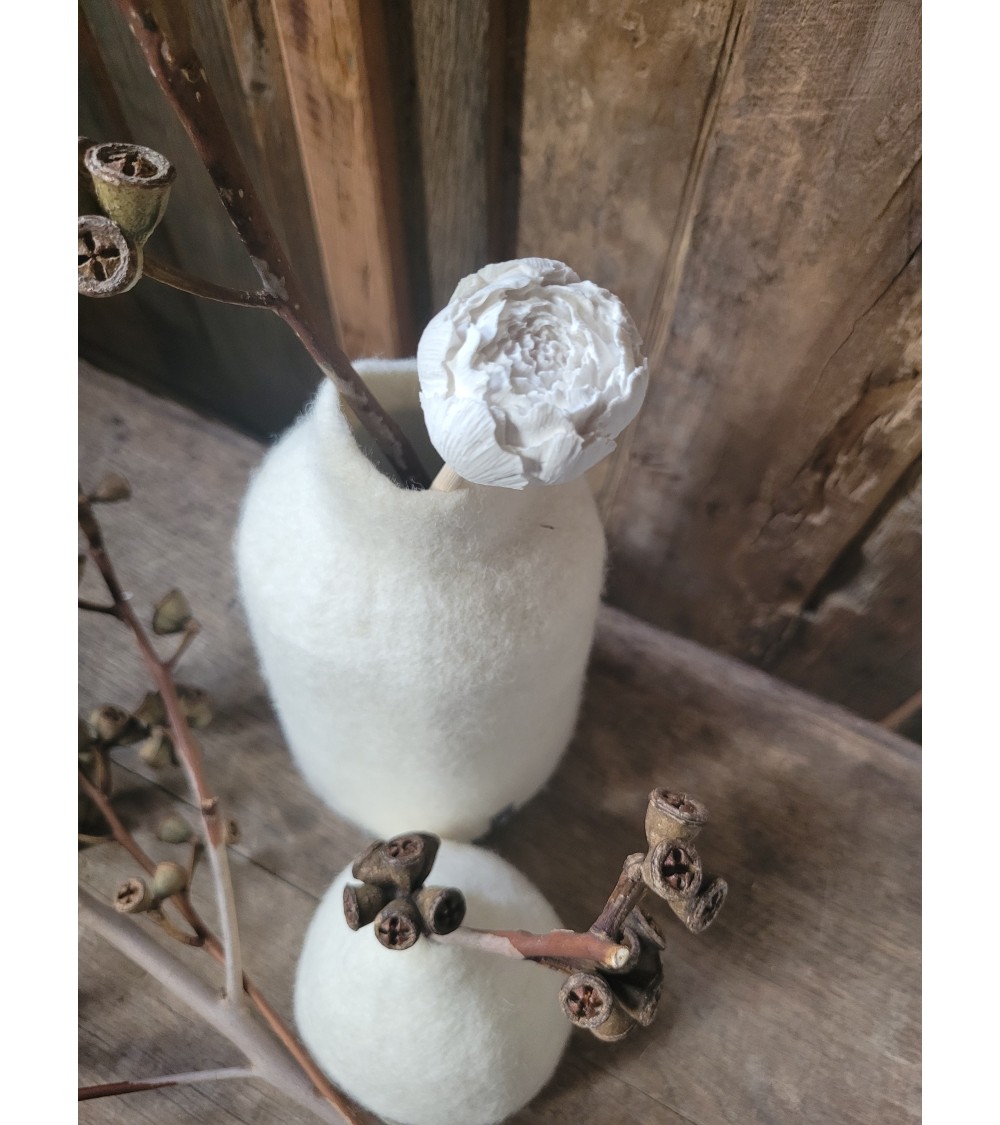 L’ornement décoratif en plâtre peut changer légèrement de couleur au contact du parfum. Toutes les créations de l’Atelier de Maryse peuvent présenter des irrégularités, dues à leurs fabrications artisanales.
