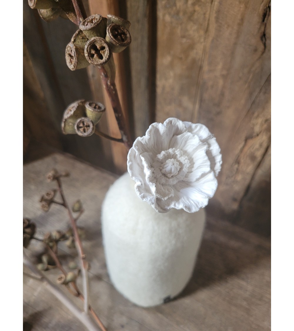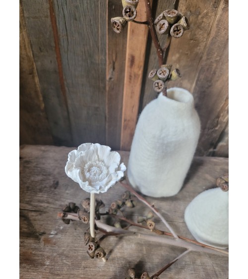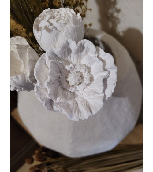 Le parfum d’ambiance va diffuser par capillarité à travers le roseau et l’ornement de plâtre.