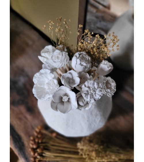 Le parfum d’ambiance va diffuser par capillarité à travers le roseau et l’ornement de plâtre.