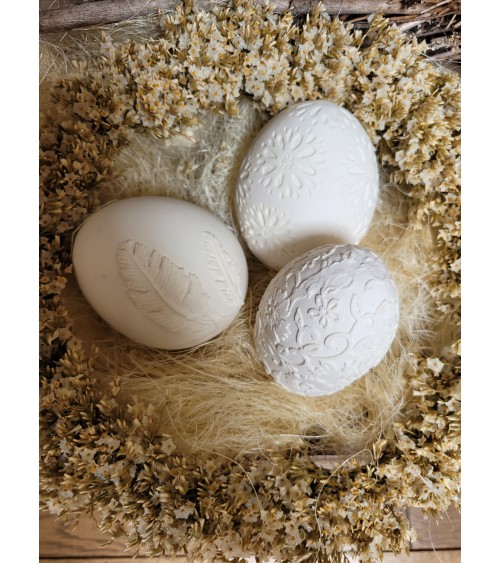 Objet décoratif en plâtre massif à combiner pour créer une déco de Pâques typée et raffinée qui s'intègre dans tous types d'intérieur.