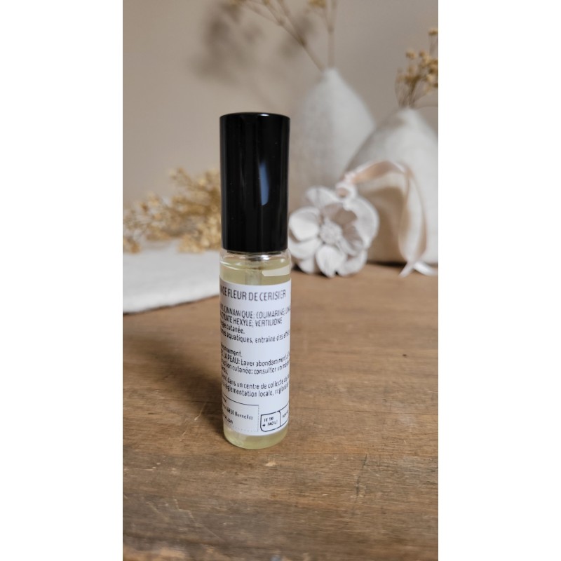 le parfum Fleur de cerisier dégage un doux scillage subtil  floral et poudré, évoquant le printemps éternel, aux délicates notes boisées, florales et fruitées . Pour créer une atmosphère poétique.