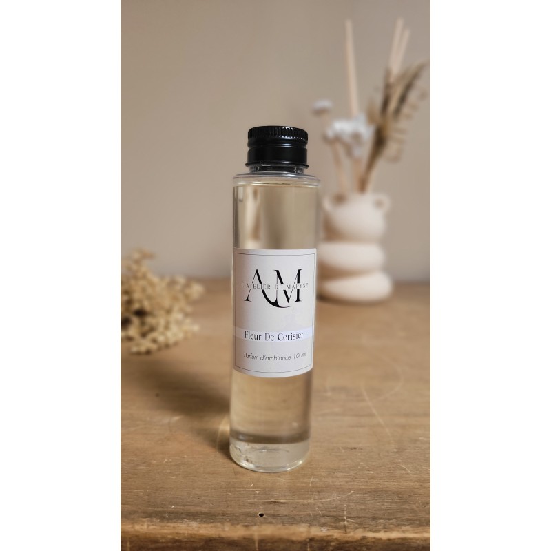 le parfum Fleur de cerisier dégage un doux scillage subtil floral et poudré, évoquant le printemps éternel, aux délicates notes boisées, florales et fruitées . Pour créer une atmosphère poétique.
